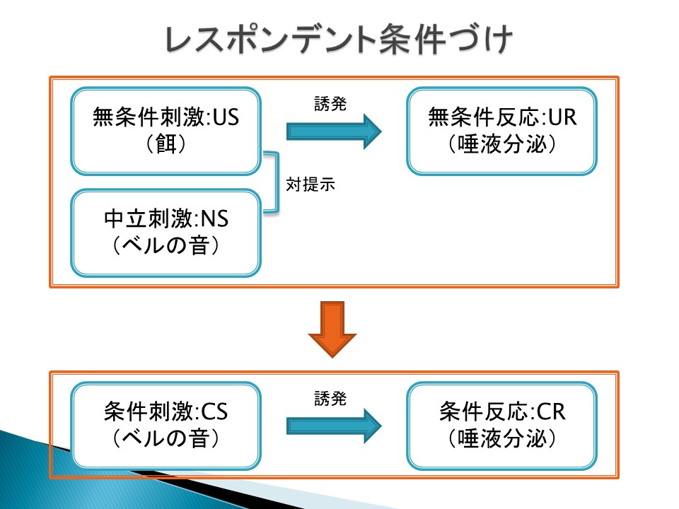 パヴロフの犬からもわかるように、レスポンデント条件づけは「刺激」と「反応」の関係に関わるものです。餌やベルの音という「刺激」に対して、唾液分泌という「反応」があるわけですからね。